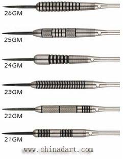 O dardo mais popular para lançadores de dardos é o dardo de tungstênio, porque um dardo de tungstênio de alta densidade resistirá ao desgaste e cria um cano menor que permite agrupamentos mais apertados de dardos. Os dardos de latão e níquel / prata são mais baratos e são feitos de dardos de metal mais macio, o que significa que o recartilhado pode desgastar-se rapidamente com os óleos da pele, o atrito e o contato de outros dardos. Ao comprar dardos de tungstênio, certifique-se de prestar atenção à embalagem, pois a porcentagem de tungstênio é muito importante para a qualidade do dardo. Quanto maior a porcentagem, melhor e mais caro é o dardo. O principal benefício de um dardo de tungstênio de alta qualidade é que o cano será menor, de modo que você será capaz de lançar agrupamentos mais apertados de dardos, minimizando quedas de ressalto.
